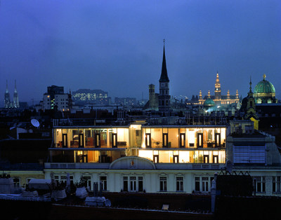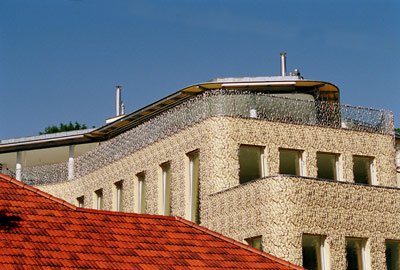Sie basiert für mich auf drei Ansätzen: 1. Die Lust am Kontextuellen: Wie kann ich eine Umgebung interpretierend in die Gebäudegrundstruktur einbeziehen? 2. Die Fragen rund um Semiotik, Zeichen, Intensitäten. Sie ergaben sich während meines Studiums aus dem Frust über diese ganze Bauwirtschaftsmoderne. Ich fragte mich, wie ich die Dichte an Informationen vermitteln kann, ohne postmodern-dekorativ sein zu müssen. Als Drittes kommt das Wiener Thema der Oberflächen hinzu, das erst mit Semper und seiner Auffassung von der »Bekleidung des Hauses«, dann mit Wagner und der Sezession sehr wichtig wurde und schließlich mit Loos’ Pamphlet »Ornament und Verbrechen« seinen Kulminationspunkt erreicht hat.