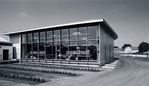 db: Dort wurde das System eines alten Fabrikgebäudes aus Stahlbetonskelett und vorgesetzter Ziegelwand in einem Anbau fortgeführt, dessen Tragstruktur aus Stahl mit einer unabhängigen Haut überzogen ist, die ihr ganz eigenes Leben entfalten kann.