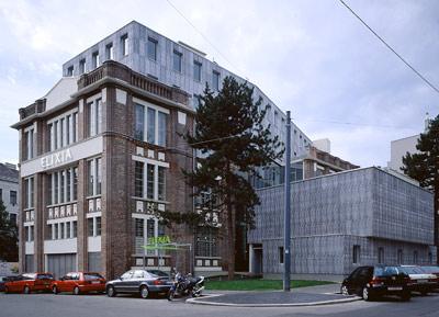In der Hütteldorfer Straße hingegen, wo es allein darum ging, einen Kontext zu erzeugen, ist die Fassade sehr dünn. Sowohl die Ziegel- als auch die Aluminium-Schicht sind nur vorgestellte Vermittler zum Außenraum.