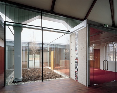 Dort hat das Muster natürlich eine sehr starke Zeichenwirksamkeit. Was mich dabei am meisten interessierte, war, wie schaffe ich eine Struktur mit zwei oder drei Fertigteilen? Im Prinzip ist es ein riesiger Zaun, der freilich durchlässig ist und als eine Art Puffer zwischen einer stark befahrenen Straße und den eher kontemplativen Innenräumen wirkt. Sicher haben alle Fassaden eine sehr starke Wirkung nach außen, insofern ist jede Fassade ein Mediator zwischen außen und innen und zwischen Nutzer und Marketing. Es geht uns aber nicht darum, von vornherein eine spektakuläre Fassade zu entwerfen. Fassaden, oder besser die Strukturen im Übergangsbereich werden bei uns immer aus dem Projekt, aus dem Konzept entwickelt.