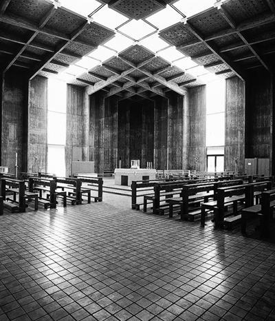 Die Büroanfänge, gemeinsam mit Friedrich Achleitner, der sich nach einem ersten realisierten Werk allerdings gleich in die Gefilde der Sprache abgesetzt hat, sind heute schon Legende. Immerhin, die „Ausräumung“der Rosenkranzkirche, ihre innere Bereinigung, die auch so manchen Kirchendiener wieder den substanziellen Gehalt eines sakralen Raums erkennen ließ, wurde zum Merkstein. Auf dem Gebiet der Sakralarchitektur konnte Gsteu noch zweimal nachhaltig tätig werden: Gemeinsam mit den „Dreiviertlern“(Kurrent, Spalt) in Steyr-Ennsleiten und bei seiner Anlage in Baumgarten, die wohl bis heute einen Höhepunkt in seiner Arbeit darstellt. Man schrieb die Sechzigerjahre, und die Seminare von Konrad Wachsmann in Salzburg waren nicht fern. Und das spürt man. Industrielles Bauen, Module, die sich reihen lassen und doch eine (angeblich preisgünstige) räumliche Vielfalt ergeben, strukturelles Denken – die Prämissen sind Legion, an denen sich die jungen, aufmüpfigen Geister damals aufgerieben – und die träge Volksmeinung zerrieben haben.
