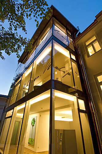 Gegründet würde das Büro 2004, als die beiden Schulfreunde (Jahrgang 1970) nach dem Studium in Graz zurückkehrten. „Am besten funktionieren wir eben im Gebirge“, lacht Ulrich Stöckl. Raum fand sich in einer alten Garage im Hofe der Egger'schen Tischlerei, die man mit Lamellen aus Holzresten des väterlichen Betriebs kostengünstig verkleidete.