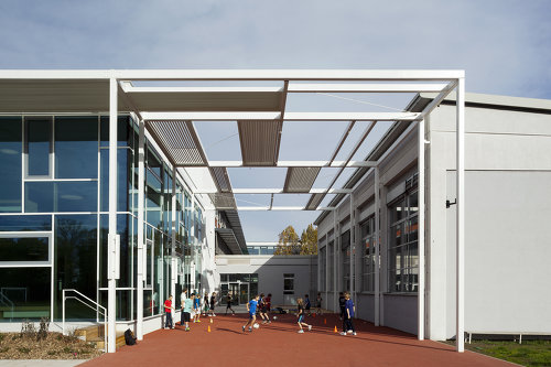 Der Abbruch von pädagogisch-räumlichen Wänden für einen offenen Kindergartenbetrieb verläuft parallel zu schulischen Lehrkonzepten, die ebenfalls dynamische Gruppenarbeit gegenüber Frontalunterricht im fixen Klassenzimmer bevorzugen. Ein gutes Beispiel für eine Verräumlichung dieses Erziehungskonzepts – bei dem einmal mehr Holz eine wichtige gestalterische Rolle spielt – ist der 2007 erbaute städtische „Fuji Kindergarten“ von Tezuka Architects in Japan. Im Gegensatz zu Schütte-Lihotzkys Raumstrukturierung zeigt dessen Grundriss „offene Gruppen“ unter einem gemeinsamen Dach rund um einen zentralen Garten. Während der geschlossene Innenhof noch überschaubar ist, hat das Dach Erlebnisqualitäten, die mit denen des Waldkindergartens vergleichbar sind: Das für die Kinder begehbare Dach ist von Bäumen durchstoßen. Die Dach-Löcher rund um die Stämme sind nur mit Netzen gesichert, in die die Kinder – ob risikofreudig oder einfach nur verspielt – hineinspringen können, was sie auch gerne tun. Das „Herausfordern“ der Kinder steht hier der Sorge um ihre Sicherheit produktiv gegenüber.