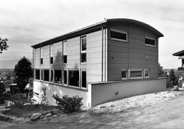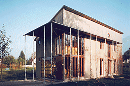 Seine „Rückkehr“ zu avancierten Holzkonstruktionen traf nach 1990 auf ein sehr paradoxes Phänomen. Bauherren, die ein Holzhaus wollten, konnten sich dieses nicht mehr leisten. Denn mit der grandiosen Holzbau-Hausse im Ländle waren die Firmen nun so ausgebucht, die Preise wegen der Nachfrage so gestiegen, dass Wäger seine kleinen Projekte, um sie für die Klienten erschwinglich zu machen, mitunter auf massiv – Ziegelmauerwerk verputzt –- umplanen musste. Ich konnte aber sehen, dass selbst dann sein struktives Formgefühl, seine vom Holz geprägte Rhythmik und typische Proportionalität im baulichen Ausdruck spürbar blieb.