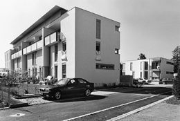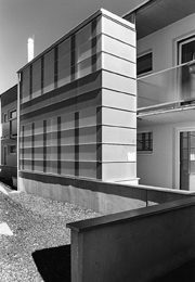 Wägers Prototyp dafür, wie man statt der Zersiedelung mit Einzelhäusern in Reihenhausverbänden leben könnte, schonender für die Landschaft und die Gemeindekassen, preisgünstiger und komfortabler für die Einzelnen, mit den zusätzlichen Vorteilen und Möglichkeiten gemeinschaftlicher Nutzungen, das entsteht 1970-72 in Schlins. Die in zwei niedrigen Zeilen angeordneten Reihenhäuser für sechs ambitionierte Familien mit Kreativberufen, darunter auch Wäger selbst, sind neben Purins „Halde“ zweifellos die „Urmeter“ für die später so virulente neue Baukunst Vorarlbergs. Friedrich Achleitner hielt sie für vorbildlich „zur Lösung des Wohnproblems mit geringen Mitteln in ländlicher Situation“. Das Preis-Leistungs-Verhältnis war damals einzigartig im Lande, die Wohnqualität ist es bis heute.