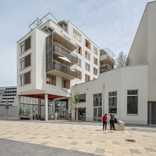 Unter den Auflagerlinien der Schalen sind im Untergeschoss Innenwände mit einer Stärke von 55 cm angeordnet, welche die vertikalen Lasten aus den Schalenauflagern direkt in die Fundamente weiterleiten. Unterbrüche in den Wänden unterhalb der Patios ermöglichen die für den Parkingbetrieb nötigen Fahrgassen. Die Stützen im Untergeschoss unterteilen sich in zwei funktionale Kategorien: Die Nachbarstützen der Innenwände müssen neben ihrer normalen Funktion des vertikalen Lastabtrags der Deckenlasten zusätzliche Reaktionen aus der Einleitung der Auflagermomente der Schalen mittragen. Ihre Dimensionen sind mit 30 × 60 cm entsprechend grösser als jene der Standardstützen mit 30 × 40 cm bzw. 40 × 40 cm in den restlichen Bereichen des Untergeschosses. Die Aussenwände mit einer Stärke von 25 cm bilden den peripheren Abschluss des Untergeschosses. Sie sind auf den anstehenden Erddruck und einen potenziell möglichen Wasserdruck bis auf 1 m über dem Wandfuss bemessen. Die minimal 25 cm starke Bodenplatte und die Aussenwände sind als «weisse Wanne» über eine Länge von 160 m fugenlos ausgebildet. Sie liegt auf einer sandigen, lehmigen Bodenschicht mit mässiger Tragfähigkeit, in der Hangwasser zirkuliert. In den Zonen unter den Innenwänden, in denen die grossen Vertikallasten an die Tiefengründung weitergeleitet werden, beträgt die Stärke der Bodenplatte deshalb bis zu 2 m.