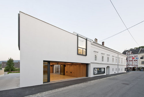 Beim preisgekrönten Gemeindehaus in Ottensheim bei Linz verpassten sie dem Gemeindesaal eine öffenbare Glasfront zur Straße und machten ihn so zum Teil des öffentlichen Raumes.