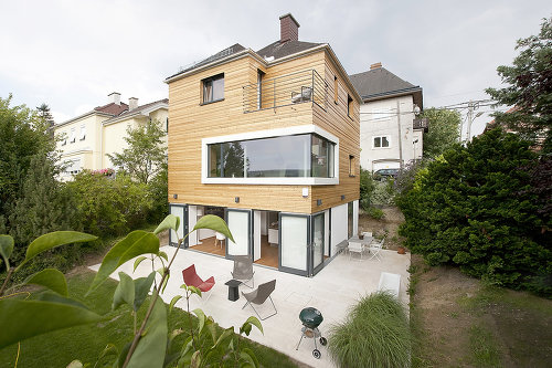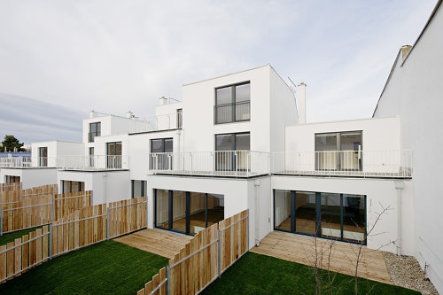 Nicht so die Ende 2011 erbaute Wohnanlage in Wien-Aspern von SUE Architekten: Um trotz der geforderten Bebauungsdichte genügend Privatheit zu bieten, versetzten sie die Reihenhäuser zueinander und umrahmten die Gärten mit soliden Holzzäunen.