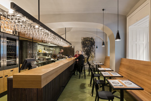 Bei ihren Innenausbauten wie dem dezent renovierten Gmoa-Keller haben die Architekten gezeigt, wie man Räume so teilt, dass man sich intim und ungestört genauso wie kollektiv daran erfreuen kann.
