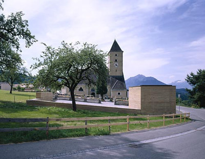 Starten wir unseren virtuellen Architekturrundgang mit dem zuletzt genannten Projekt: Kirchen und Kapellen waren seit jeher eine knifflige, sehr schwierige Aufgabe für Planer, und wenn zusätzlich noch Bedacht auf eine schon bestehende Kirche zu nehmen ist, die ausgerechnet vom alten Clemens Holzmeister stammt, ist Fingerspitzengefühl angesagt. Bernhard und Stefan Marte gewannen den entsprechenden Wettbewerb mit einem außergewöhnlichen Projekt, das zum einen sehr streng konzipiert, zum anderen fast spielerisch auszuführen war. Denn das Material, aus dem die beiden Architekten ihren Erweiterungsbau gemacht sehen wollten, war Stampflehm. Die Jury hob hervor: „Dies stellte für die Bauherrenschaft eine große Herausforderung dar. Noch nie war ein Projekt dieser Art in Stampflehm errichtet worden, und die Realisierung war nur mit einem großen Anteil an Eigenleistung der Bevölkerung möglich.“ Das Endresultat beeindruckt durch eine gewisse Archaik, eine strenge, unfrömmlerische Spiritualität, die diese schönen Räume ausstrahlen.