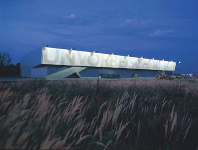 Die Kollegen von Querkraft fanden in ihrem Auftraggeber, dem Großbilddrucker Trevision, ebenfalls einen fruchtbaren Partner. Sie planten für ein großes leeres Grundstück neben der Autobahn eine geräumige Betriebsansiedlung in Form einer langgestreckten Halle, die teils zweigeschoßig und zuoberst mit Büros befüllt ist. Das Kernprodukt der Trevision - großformatige bedruckte Folien - fand an den Fassadenlängsseiten gleich als Werbeträger für das Unternehmen Verwendung. „Mit einfachen architektonischen Mitteln“, so urteilte die Jury, „wurden der interne Produktionsablauf optimiert, die Hallenkubatur ökonomisch genutzt und für die Mitarbeiter vielfältige Ein-, Durch-und Ausblicke geschaffen.“