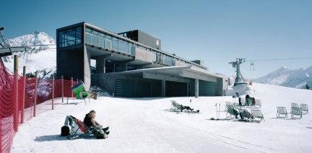 Begeisterung schließlich überkam die Jury auf 2000 Metern Seehöhe angesichts des Erlebniskomplexes „Freiraum“ an der Ahornbahn in Mayrhofen (Tirol) von M9 Architekten aus Innsbruck. Fern jeder Skihüttigkeit von der Stange ragt ein auskragender Balken aus Beton und Panoramafenstern weit in die hochalpine Luft. Der Beton für den Bau wurde ökologisch vorbildlich vor Ort erzeugt.