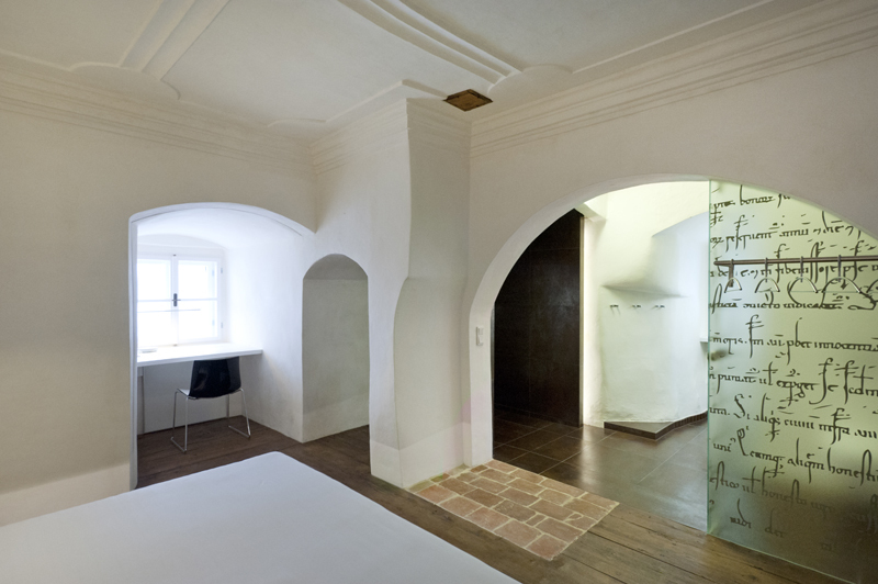Die gute Raumaufteilung und die eingesetzten Materialien wie unbehandeltes Holz für Böden und Möbel lassen eine sehr wohnliche Atmosphäre entstehen. Betreten wird das Haus am Pöstlingberg in der mittleren Ebene, durch einen sehr hohen Raum ohne unmittelbar erkennbare Funktion.