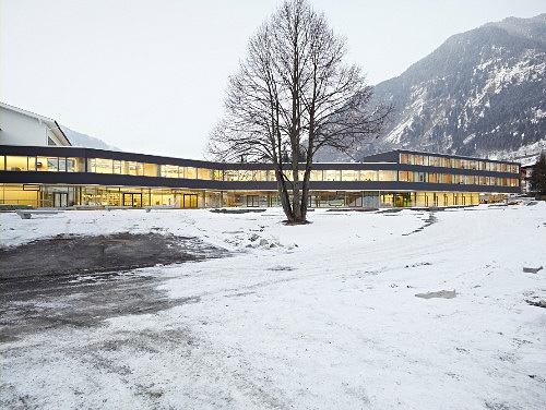 Der in den Hang eingegrabene Bau umfasst diverse Vereinsräume, einen Musikproberaum, Büros und Verwaltung sowie Garderoben, Lagerräume und Sanitäranlagen. Die Architektursprache ist bewusst reduziert. Auf den Dialog mit den vielen Lederhosen will man sich gar nicht erst einlassen. Das Dach der Anlage, die direkt an den Dorfanger anschließt, wurde nach dem Bau begrünt und lockt in der warmen Jahreszeit - wenn die Touristen längst über alle Berge sind - Kühe und Schafe zum Grasen.