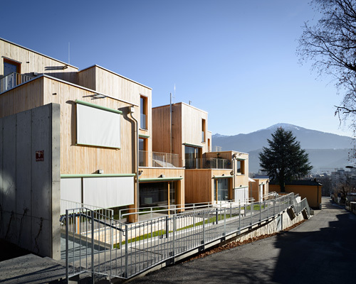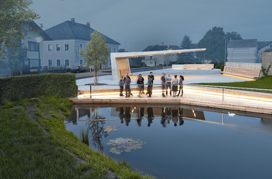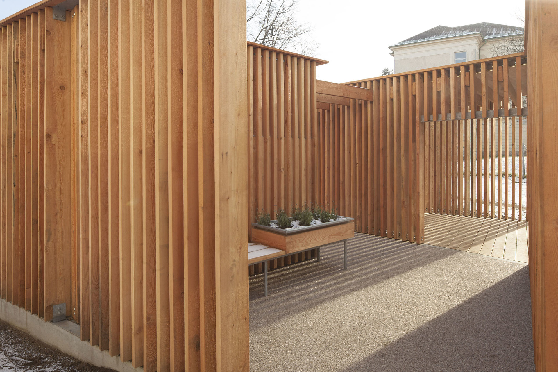 Langweilig ist die Reise für Franz P. und Rosalia W. keineswegs. Immer wieder gibt es Bänke, immer wieder gibt es Lümmelecken und Lehnboards, an denen man eine Rast machen und die spielenden Kinder im Kindergartenhof (EGKK Landschaftsarchitektur) beobachten kann. Kurze Pause, und weiter geht’s. „Demente Menschen neigen dazu, optische Brüche und allzu abrupte Wechsel in den Materialien als Barriere zu verstehen“, erklärt Architekt Helmut Wimmer. „Dann bleiben sie stehen und gehen nicht weiter. Und das wäre doch ewig schade, oder?“