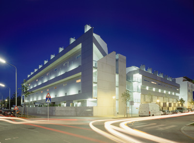 Die Rede ist vom Holzbaupreis, der erstmals auch in der Bundeshauptstadt vergeben wird. wienwood 05 nennt sich die - auf Initiative von proHolz - vergebene Ehrung, die heuer an sieben Projekte verliehen wurde; weitere sechs erhielten eine lobende Auszeichnung. Doch zurück zum besagten Leberberg, wo Geiswinkler & Geiswinkler für „Neues Leben“ die so genannte Gartensiedlung am Hofgartel planten und umsetzten. Weithin bekannte Parameter des neuen sozialen Wohnbaus prägen das ästhetisch strenge Korsett des Wohnhauses: Laubengangerschließung, schlicht und zurückhaltend im Geiste der Zeit, gelegentlich ein wenig Sichtbeton - ganz kann man sich dem Reiz der Architekturnacktheit wohl auch nicht entziehen.
