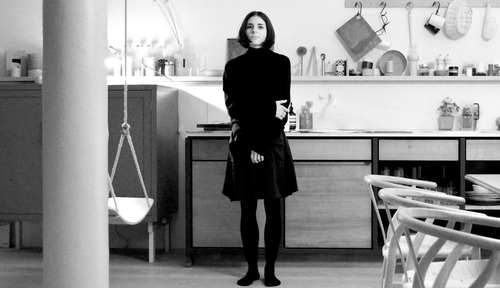 „Ich mag es, mich auf einen Ort einzulassen und mit Vorhandenem zu arbeiten. Der Kontext hilft mir zu entscheiden und zu definieren, wo ein Projekt hin soll, auch atmosphärisch. In diesem großzügigen Raum mit hoher, gewölbter Kappendecke steht ein Kubus, der die Wohnung zoniert. Er bietet Platz für ein Schlaf- und ein Badezimmer sowie einen Kleiderschrank und Haushaltsgeräte. Möglichst kompakt, damit rundherum der Raumfluss erhalten bleibt. Oben drauf befindet sich außerdem ein Gästebett.