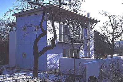 Den Fassadenproportionen entspricht im Innern ein Höhenmodul für Wandflächen und Einbauten. So wird ein Raumgefüge mit je nach Situation gestalteten Übergängen von Wand und Decke geschaffen. Im offenen Erdgeschoß werden Funktionalität und Raumqualität mit Schiebetüren verbessert, die die Nutzung von großen und kleinen Wegekreisläufen gestatten.