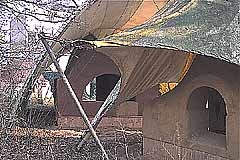 Ateliers und Werkstätten gruppieren sich U-förmig und öffnen sich zum Küchengraben. Die 4,90 m hohen Räume sind zu langgestreckten Baukörpern zusammengefaßt. Mobile Leichtwände in Tafelbauweise und demontable Emporen an den Fensterseiten ermöglichen maximale Ausnutzung und Flexibilität. Eingeschossige Bauteile, den hohen Arbeitsräumen zugeordnet, enthalten die notwendigen Nebenräume sowie ruhige Arbeitshöfe (siehe Schnitt).