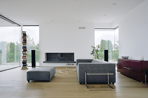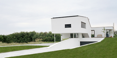 Die Schlichtheit des Gebäudes wird durch die Wahl zeitloser Materialien – weißer Putz und Eichendielen – unterstrichen. Text: Architekt