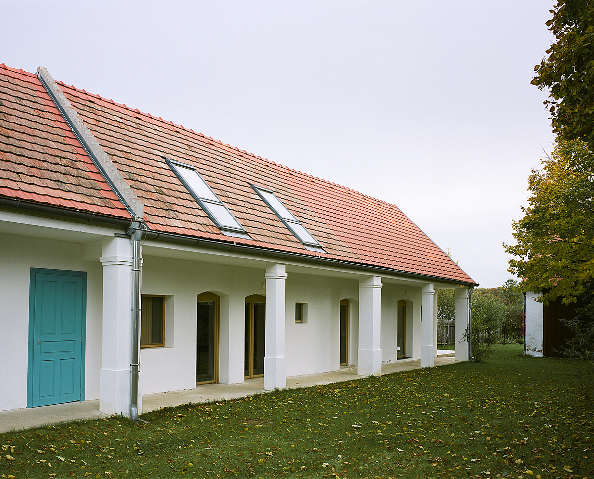 Der ältere, vordere Trakt in Lehmbauweise wurde über zwei Wanddurchbrüche mit dem neueren, bereits aus Ziegeln errichteten, hinteren Stallbereich verbunden, die bestehenden Fensteröffnungen im ehemaligen Stall und Heuboden leicht vergrößert und durch Abbruch von zwei Fensterbrüstungen neue Türöffnungen geschaffen.
