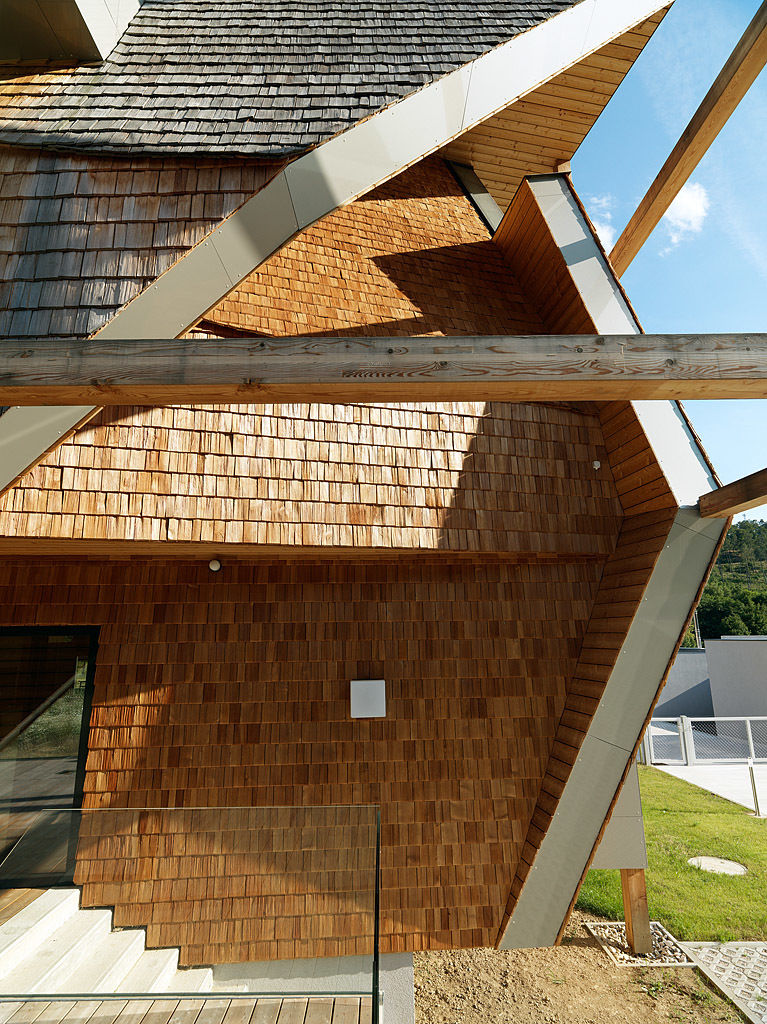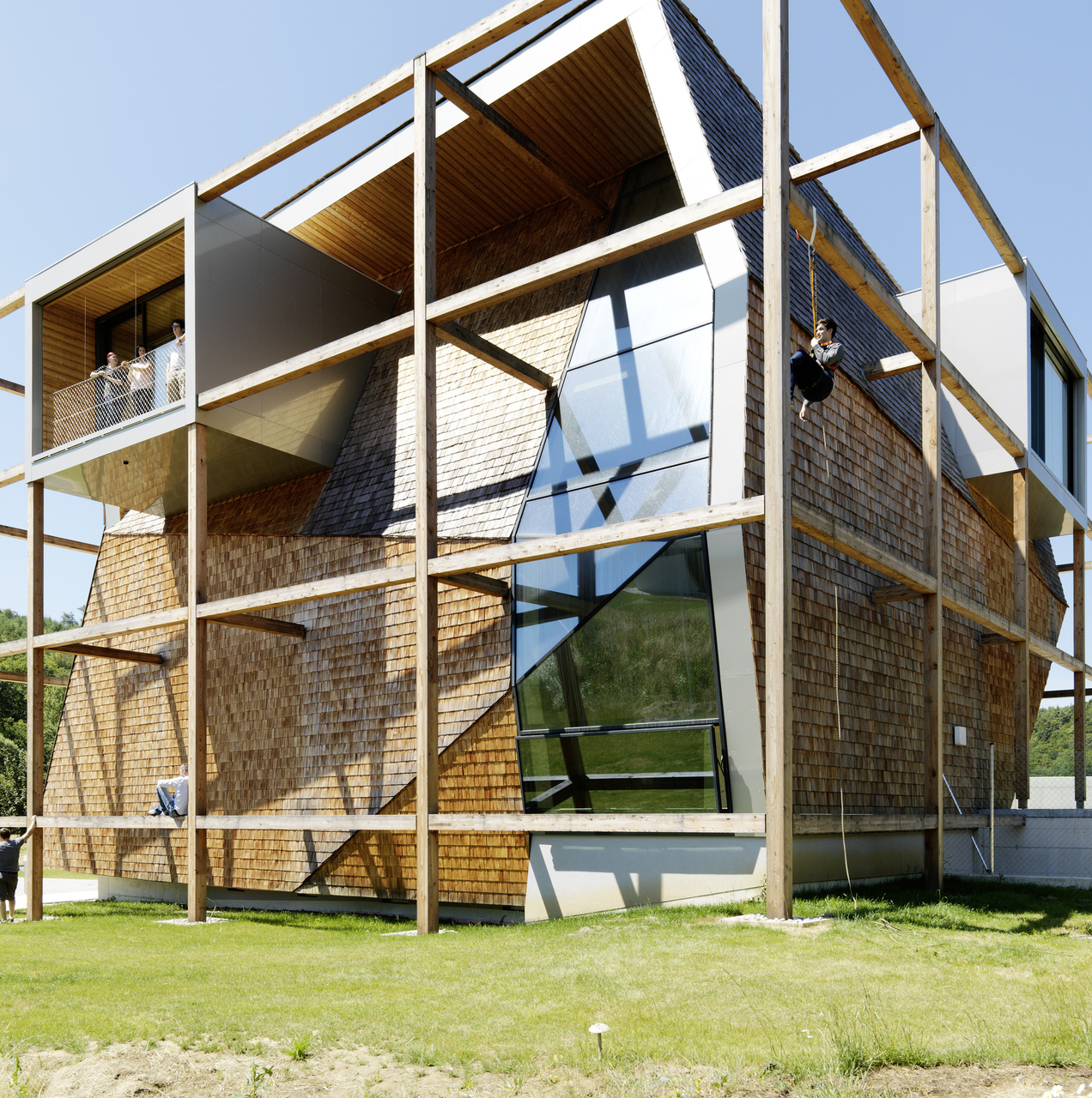 Integrierte Besprechungs- und Treffpunktzonen, angeschlossene Wohnungs- und Ruhebereiche, aber auch Fitnessräume, ein als Swimmingpool verwendeter Löschteich, außen liegende Aufenthaltsbereiche bis hin zu einer Kletterwand in der 3-geschossigen Eingangshalle versuchen die Aufgabe „Arbeiten“ in ein größtmögliches „Lebensumfeld“ einzubetten – OFFICE OFF! Energie- und Haustechnische Überlegungen, hinsichtlich einer weitgehend aber auch sinnvollen energetischen Unabhängigkeit, verleihen dem Gebäude einen nachhaltigen und ökonomischen Bezug zu seiner Umwelt. Es war wichtig das Gebäude hinsichtlich seiner Benutzer in ein ausgewogenes ökologisches Verhältnis einzubetten.