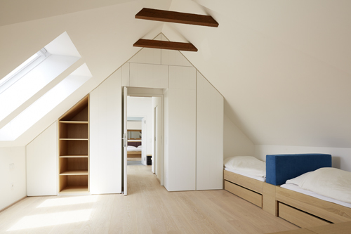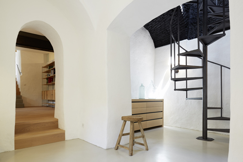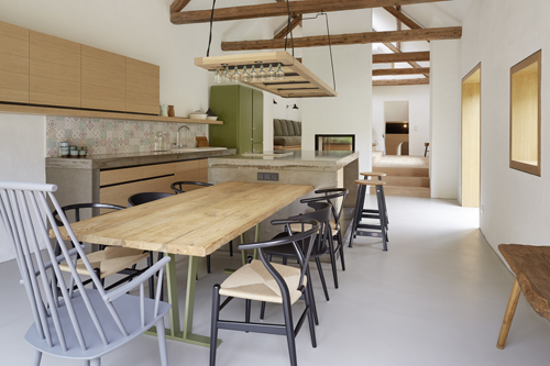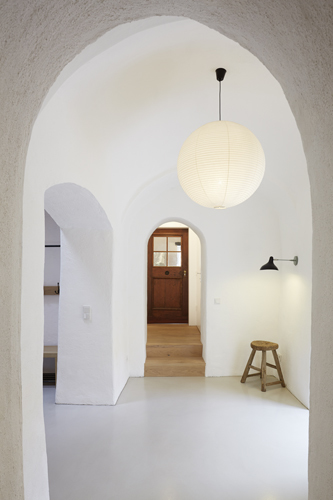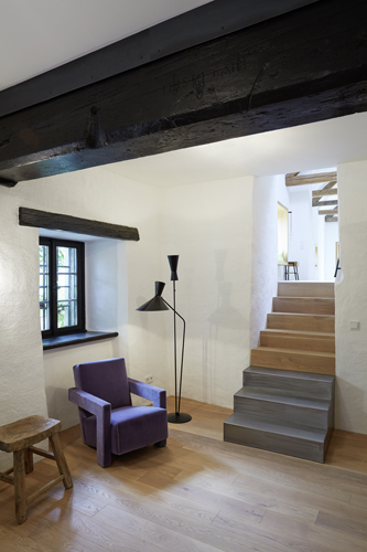 Der kleine Streckhof an der Hauptstraße von Jois wurde unter Einbeziehung der Scheune am hinteren Ende des Grundstücks zu einem komfortablen Wohnhaus umgebaut. Dabei standen einerseits der Dialog alter und neuer Elemente und andererseits das räumliche Wechselspiel zwischen Haus und Hof sowie den unterschiedlichen vorhandenen Ebenen im Vordergrund der Planung.So wurden z.B. eine Tramdecke im jetzigen Gästezimmer sowie das Dachtragwerk im Luftraum über Küche und Wohnzimmer erhalten und in die moderne Gestaltung integriert. Elemente wie Fenster, Türen, Böden und Möbel sind in Eiche ausgeführt, um ein harmonisches Miteinander von Alt und Neu zu erreichen.