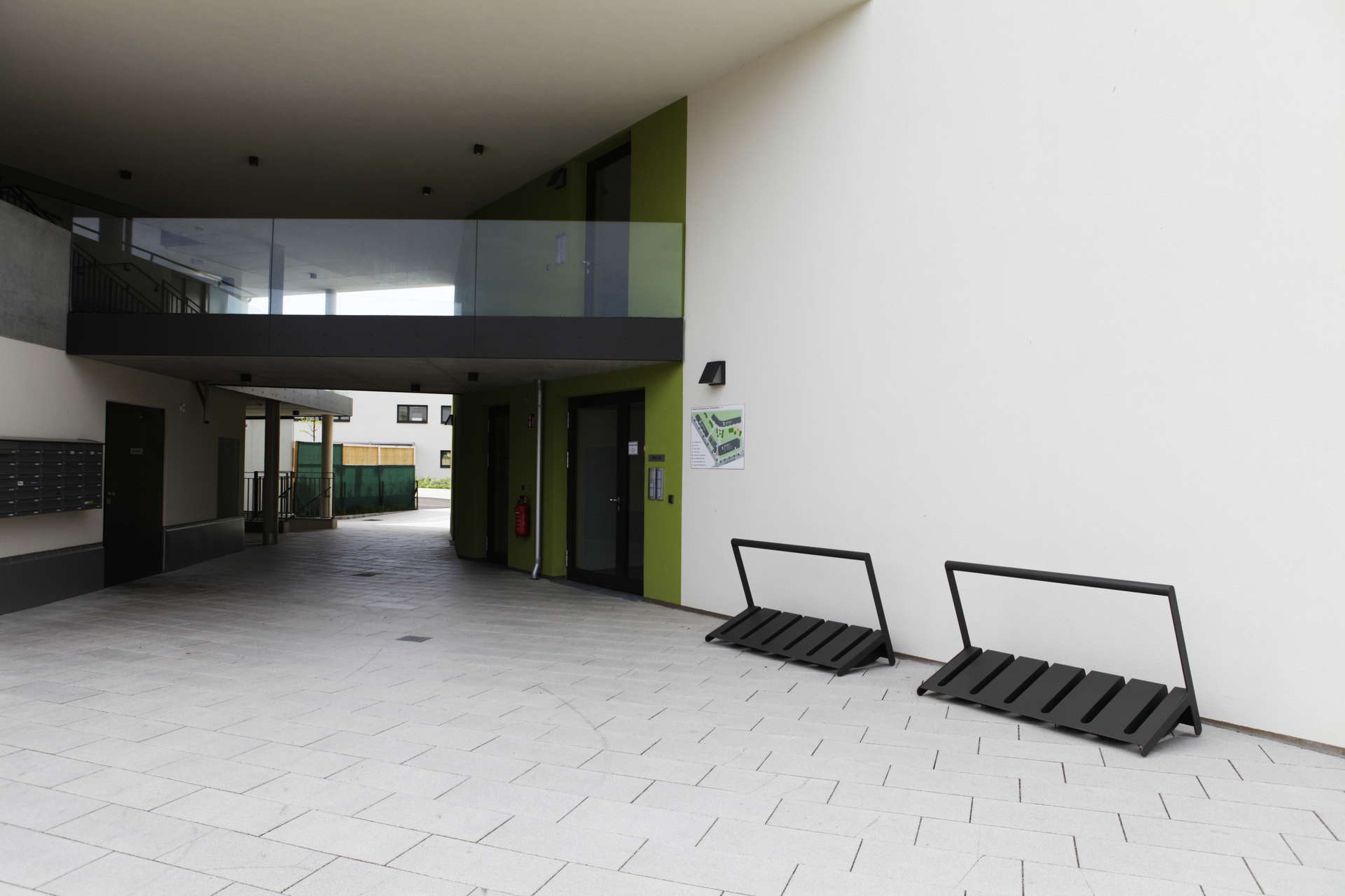Laut Stellplatzverpflichtung ist ein Schlüssel von 2,0 Stellplätzen pro Wohnung zu erfüllen. Für die 74 Wohneinheiten der gesamten Anlage sind demnach 148 Stellplätze erforderlich, die zur Gänze in der Garage vorgesehen werden, welche unter Bauteil 1 und 2 errichtet wird. Die Zufahrt zur Garage erfolgt über eine Rampe an der südwestlichen Grundgrenze. Des Weiteren werden Haustechnik- und Elektrotechnikräumlichkeiten, Fahrradabstellflächen, Hausbetreuerraum sowie die Parteienkeller für die 58 Wohneinheiten der Bauteile 1 und 2 zu je ca. 4m² in dieser Unterkellerung errichtet und über die zentrale Stiege zwischen Bauteil 1a und 1b erschlossen. Bauteil 3 hingegen wird in seinen Konturen zur Gänze unterkellert ausgeführt, die 16 Einzelkeller mit je ca. 49-60 m² werden über die darüber liegende Wohneinheit erschlossen - (interne Kellerstiege).