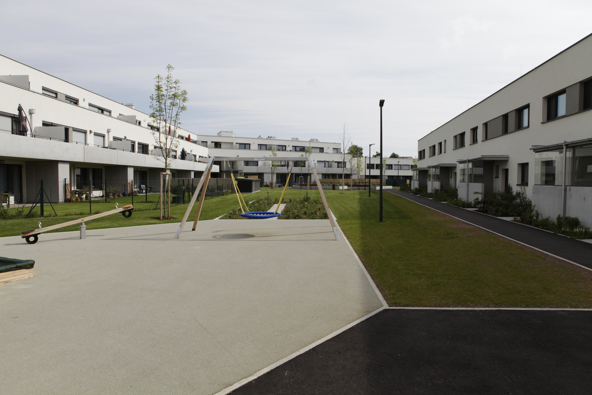 Das nahe gelegene Stadtzentrum, Bildungs- Sport und Freizeiteinrichtungen sowie jegliche Infrastruktur sind fußläufig erreichbar. Die Nähe zum Seeufer als auch zum Kalvarienberg sowie die direkte Verbindung mit dem Ortskern Neusiedl am See, sind weitere qualitative Vorteile dieses Standortes. Der großzügige Grünbereich dieser autofreien Wohnanlage steigert die Wohnqualität.