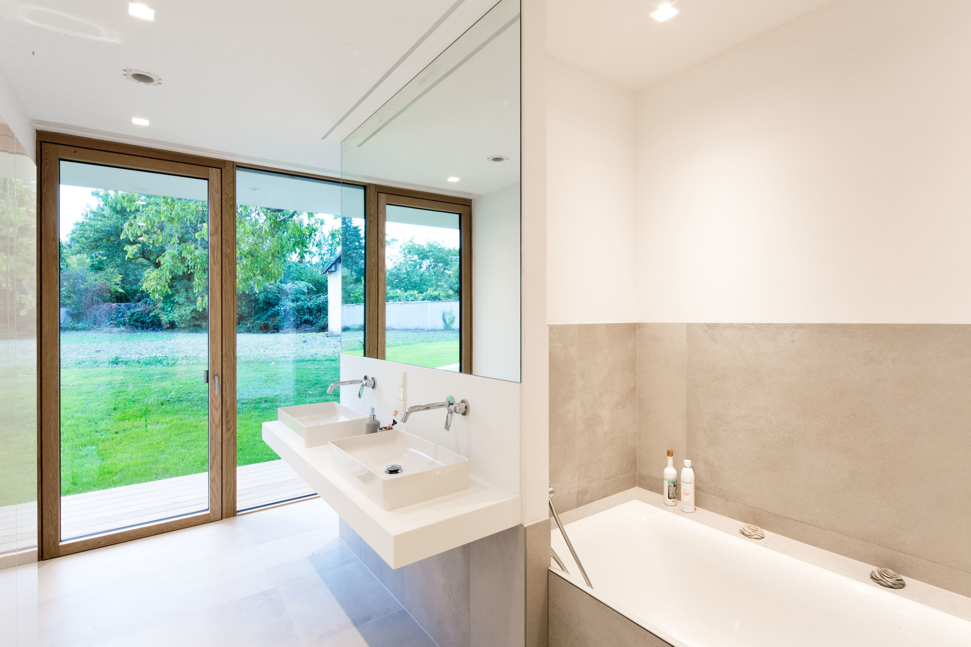 Jeder Wohnraum selbst bezieht einen wesentlichen Teil seiner Raumqualität aus seiner Beziehung zum Außenraum; jeder Wohnraum lässt sich mit dem Außenbereich verbinden und erweitern, erfährt seine Großzügigkeit durch die Miteinbeziehung der Terrasse oder des Gartens. (Text: Architekt:innen)