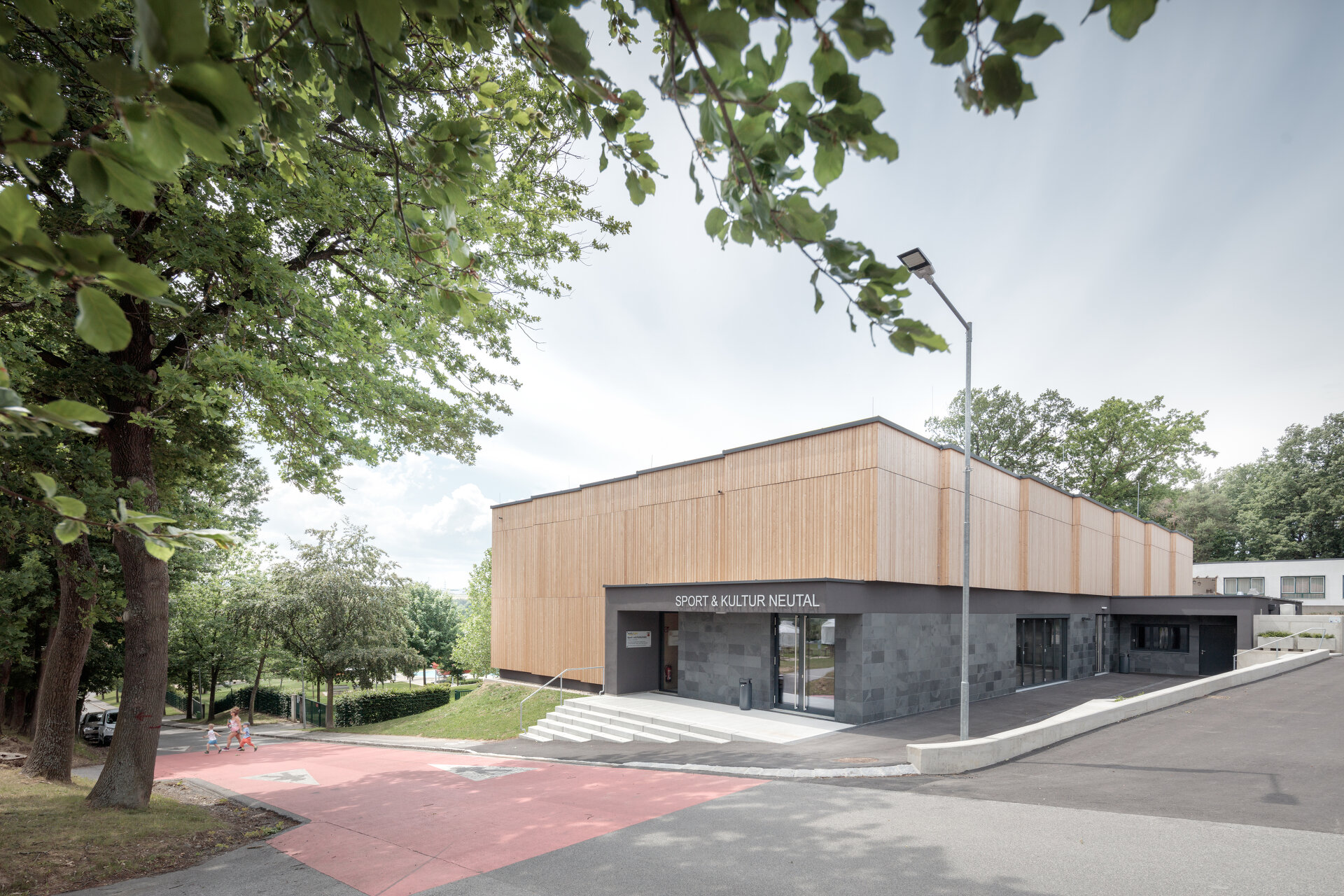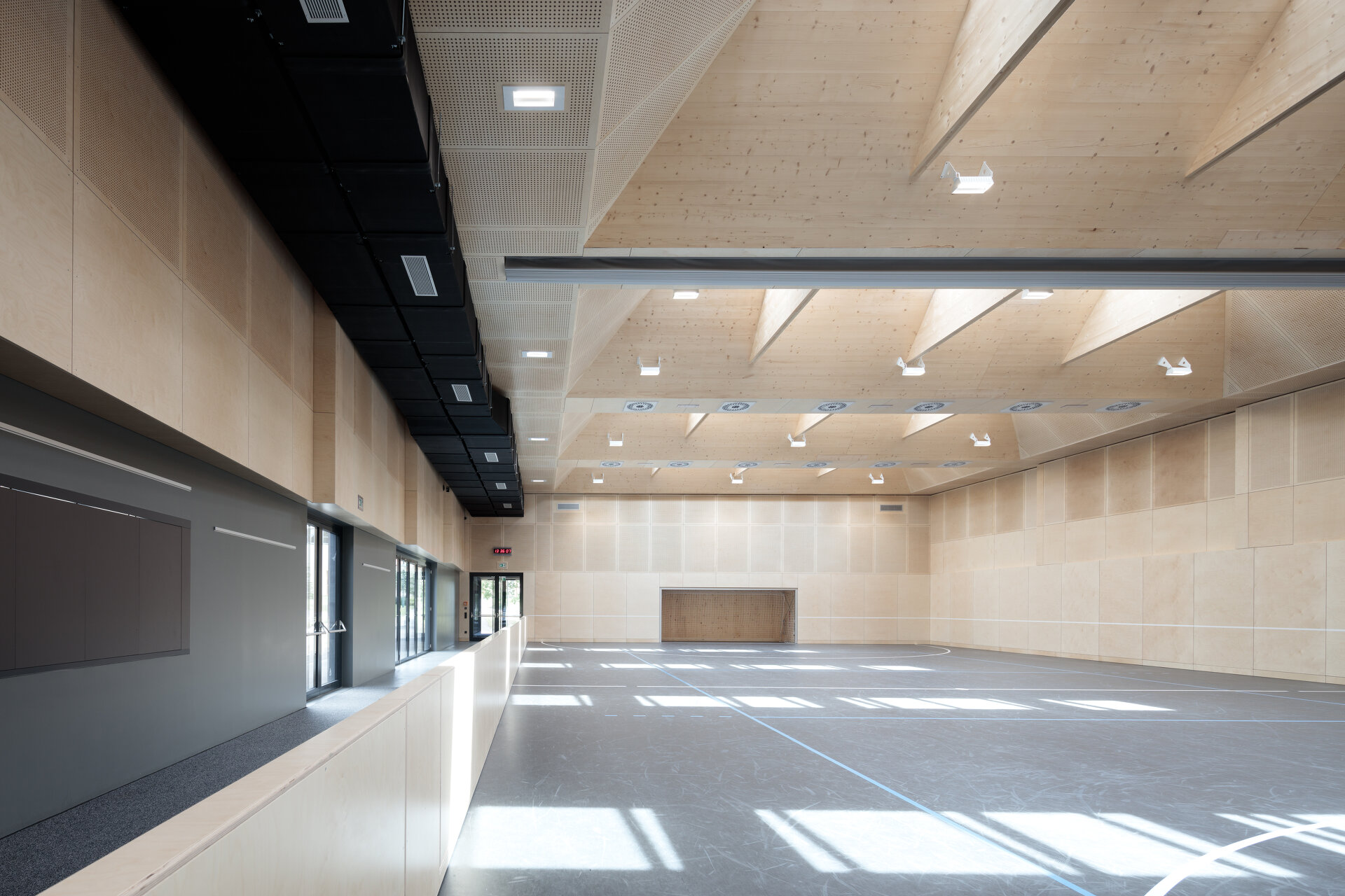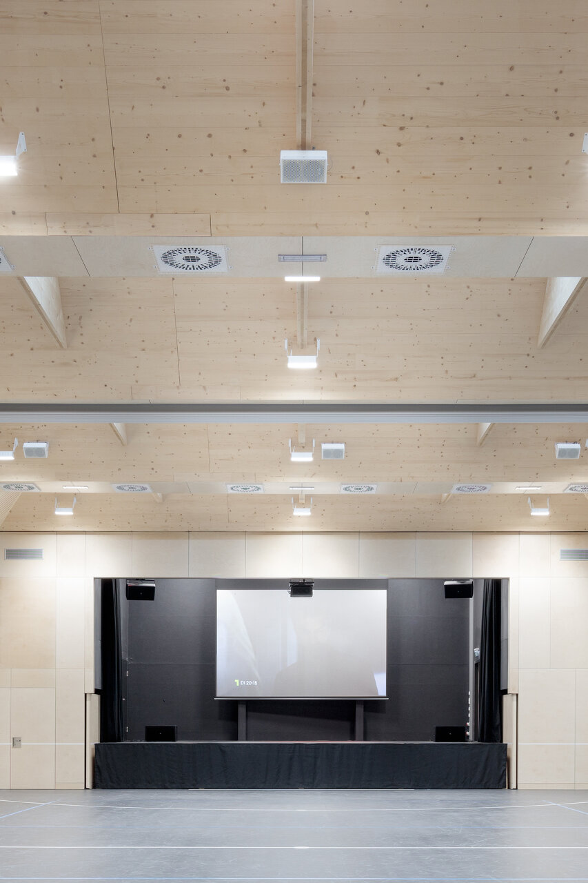 Das Gebäude bietet Platz für eine großräumige Halle mit mobiler Tribünenkonstruktion, welche auch für Sportveranstaltungen genutzt werden kann. Aus den unterschiedlichen Nutzungen entstanden spezielle Anforderungen hinsichtlich des Schallschutzes, die mit Akustikpaneelen sowohl am Dach als auch an den Außenwänden gelöst wurden. Weiters befinden sich im Gebäude alle erforderlichen Nebenräume für eine ordnungsgemäße Nutzung, wie Garderobe, Technikräume, Buffet, WCs und Lager.