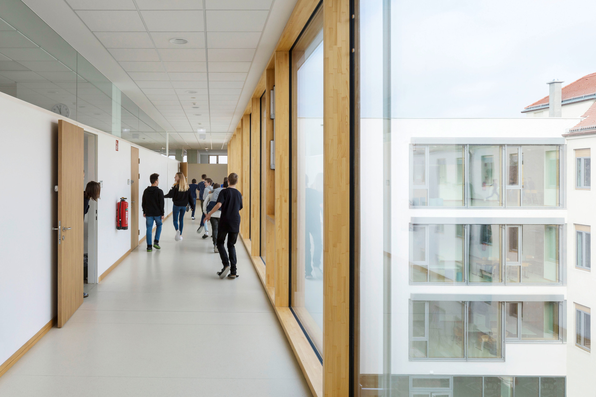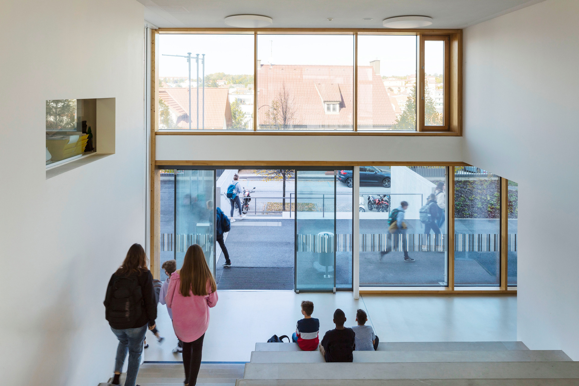 Die Klassen werden unmittelbar von „Marktplätzen“ - offenen Lernbereichen - aus erschlossen. Die Marktplätze orientieren sich zum Schulgarten hin. Alle Erschließungszonen sind gleichzeitig helle, lichtdurchflutete Lern- und Aufenthaltsbereiche. Aus den „Offenen Lernbereichen“ sind in jedem Geschoß Lern- und Pausenterrassen leicht erreichbar.