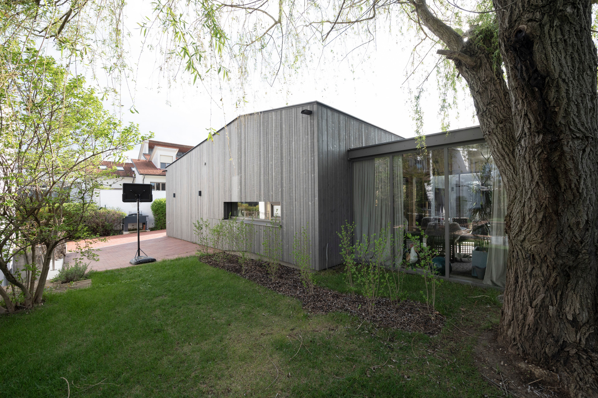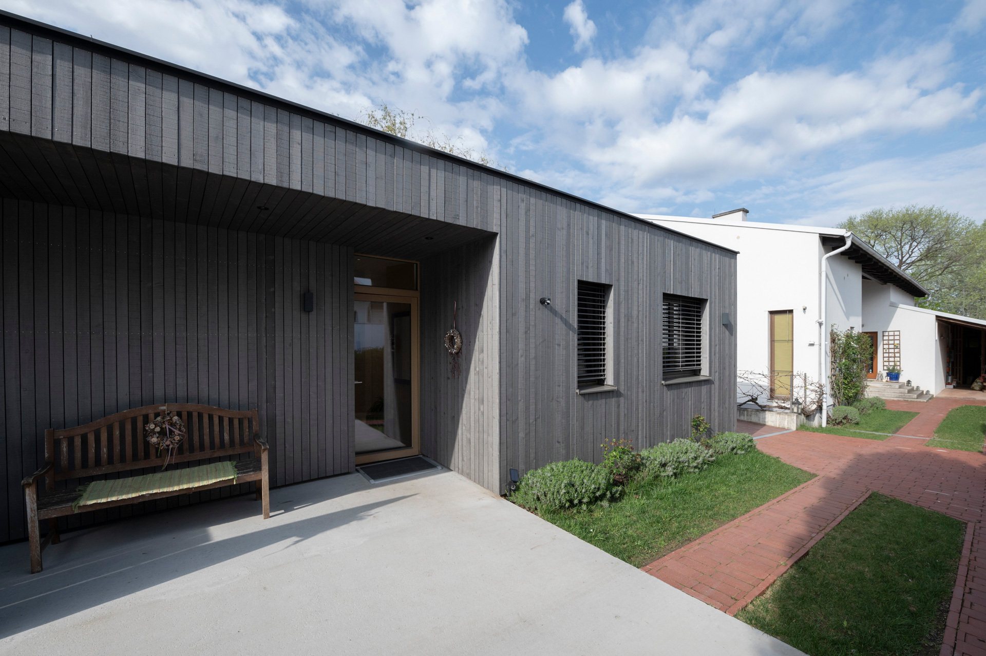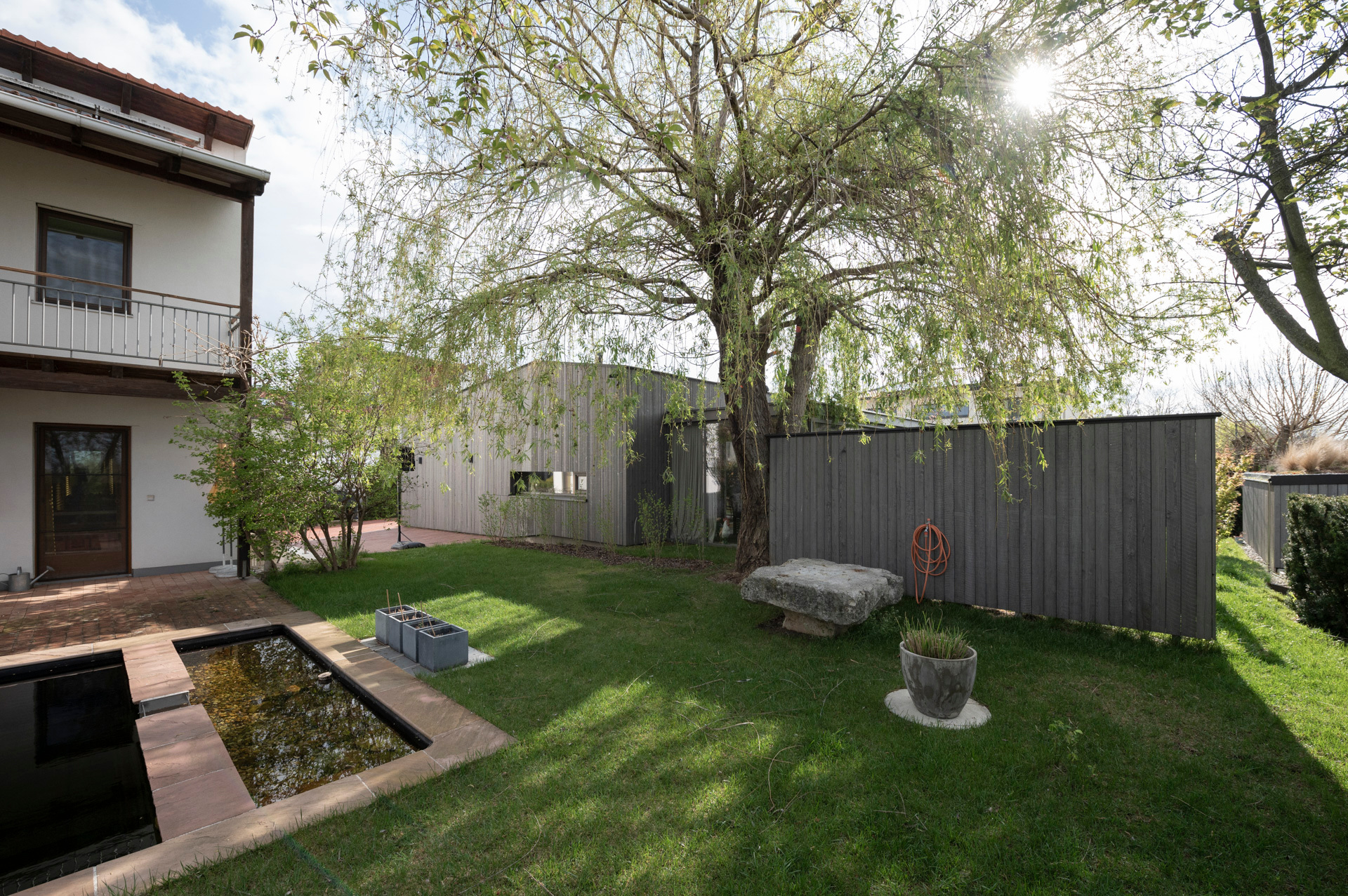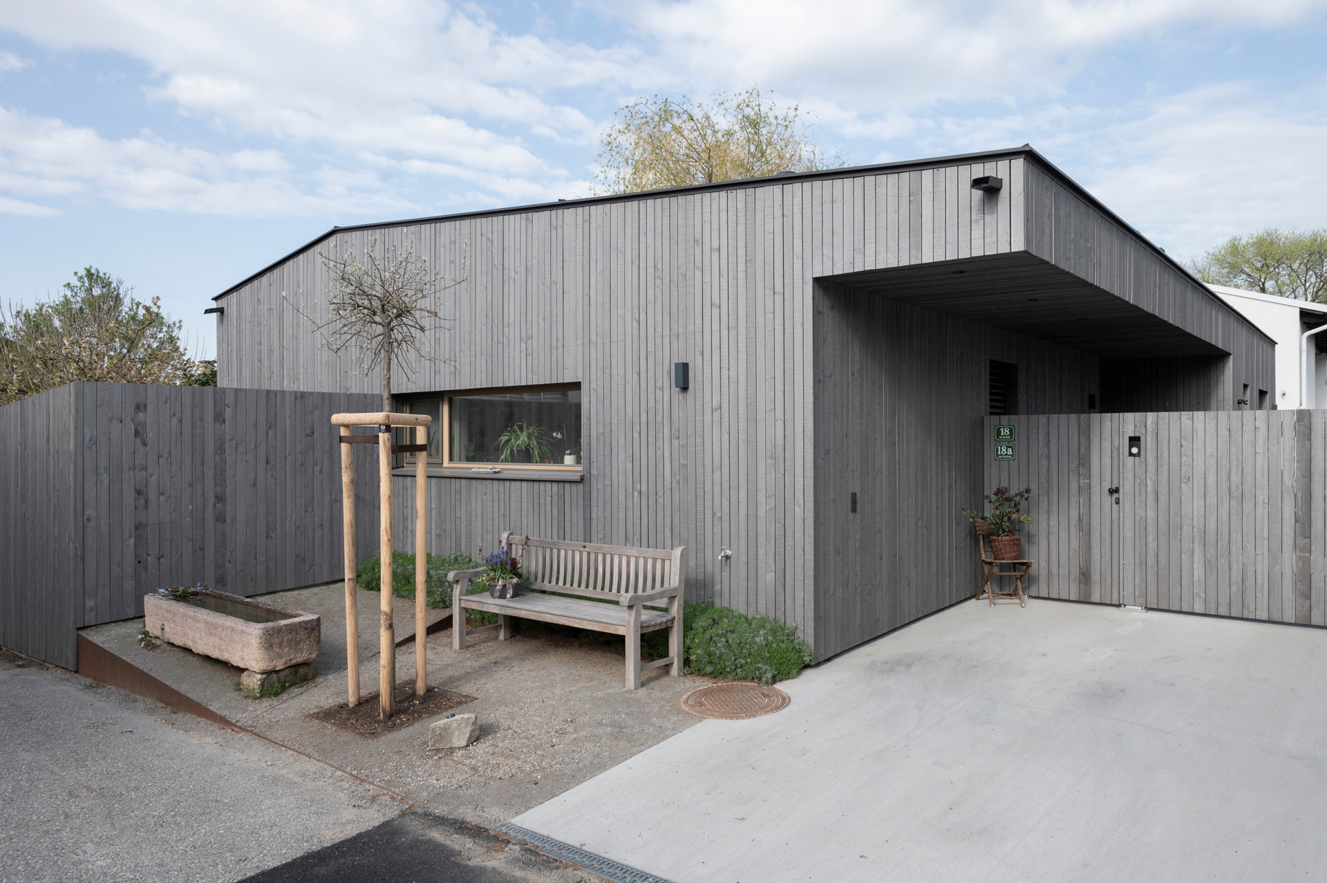 Der Entschluss, das Wohnhaus der Familie der Tochter zu übergeben und das Grundstück mit einem altersgerechten Wohnhaus „Nachzuverdichten“ war schnell gefasst. Die vierköpfige „Jungfamilie“ bezog das bestehende Gebäude, die „ältere Generation“ plante sich ein den Bedürfnissen gerechtes Wohnhaus. Trotz– oder wegen der dichten Verbauung entstanden interessante private und gemeinschaftlich genutzte Freiräume, die ein spannendes Interagieren dreier Generationen ermöglichen.