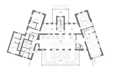 Once a famous Albrecht family restaurant and cafe that belong to the atmosphere of Bratislava at the beginning of the 20the century now faced the need of reuse and reconstruction in order to provide boutique hotel at unique location in the villas quarter above the castle. The symmetry of the overall space distribution offered the central care building with dominant height and side wings that follow the geometry of the site and delimit a small front square. The original function was enriched by a wider program of hotel with spa and relaxes facilities. Partially covered terrace expands the restaurant and cafe floor area at the street level. The reception hall gives entrance to the hotel rooms on the upper levels and downstairs to the new form of wellness zone inserted on place of the former terrace. Sophisticated extravagancy of the architecťs intervention fits within the limits of values given by the original piece. Michal Škrovina