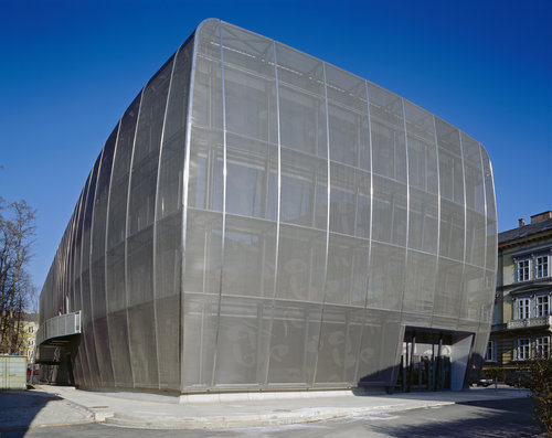 Box hin – Blob her, den Nutzer scheren Diskurse um Organisationsstrukturen und Erscheinungsformen, die der heutigen Welt und ihrem Tempo angemessen scheinen, ohnehin wenig. Die Initiatoren des Mumuth freuen sich nach jahrzehntelangem Einsatz für ein neues Haus darüber, dass es nun endlich Realität ist. Dass es keinen adäquaten Vorplatz und Eingang hat, wird ihnen vielleicht gar nicht auffallen. Die Frage nach der Angemessenheit des formalen Aufwands darfgestellt werden. Ob das neue Haus gute Arbeitsbedingungen bietet, die Saalakustik, derSchallschutz nach außen und innen funktionieren, wird man sehen. Selbst die digitale Avantgarde ist Konventionen ausgesetzt – nebst der Schwerkraft als Naturgesetz.