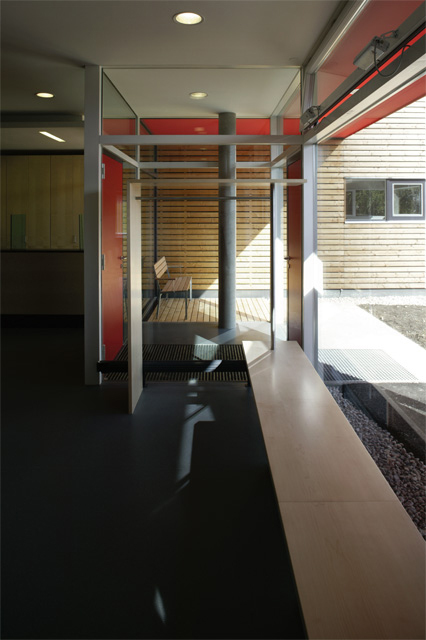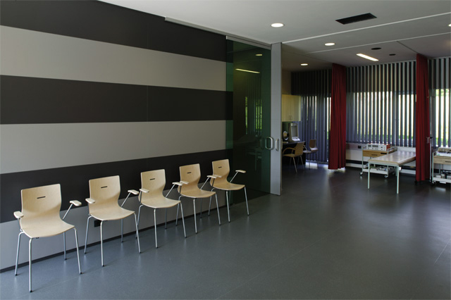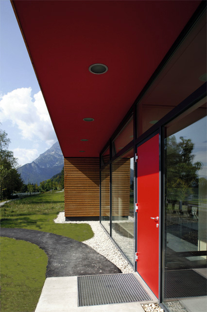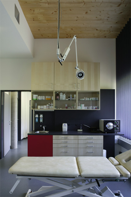 Am westlichen Ortsrand von Stainach liegt abseits des Stainacher Schlosses als städtebauliche Überleitung der dichten Geschoss-Wohnbebauung zum freien Kulturlandschaftsraum die Ordination Dr. Pintar als Kontrapunkt in Form und Material. Das gut proportionierte und bis ins Detail sorgfältig gestaltete Gebäude aus vorgefertigten, massiven Holzbauteilen und unbehandelter Holzfassade besticht durch hohe Außen- und Innenraumqualität mit spannenden Farbakzenten. Der großzügige Patienten-Zugang ist generationengerecht über Rampen erschlossen, die durch einen liebevoll angelegten (Heil-)Kräutergarten führen. Die Rezeption und Wartezone sind ähnlich einem Hotelfoyer konzipiert und vermitteln eine angenehme, wohnliche Atmosphäre, die dem Patienten die Schwellenangst nimmt und die Wartezeit erträglicher macht. Mit einem übersichtlichen und funktionalen Raumkonzept und flexibel „bespielbaren“ Räumen wurde ein hohes Maß an Nutzungsmöglichkeiten und Variabilität geschaffen. Sowohl der Rezeptions- und Wartebereich als auch die darum gruppierten Untersuchungs-, Therapie- und Nebenraumtrakte mit dem großzügigen Sozialraum sind hell von Tageslicht durchflutet, das langgezogene Panoramafenster der einzelnen Ordinationsräume eröffnet den Blick auf die Bergkulisse des mächtigen Grimmingmassivs. Die Holzkonstruktion ist durch die Möglichkeit der vertikalen Erweiterung sehr vorausschauend angelegt. (Text: Geramb Dankzeichen 2005)