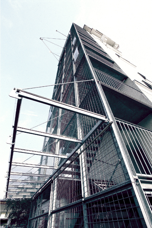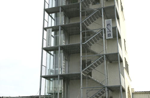 Fast könnte man versucht sein, die Stahlkonstruktion, die mittels Lift und Treppen den Wasserturm nun als Medienturm für die Öffentlichkeit zugänglich macht, für sich alleine zu betrachten; so sind die Räume, die das offene Stiegenhaus nun erschließen, nicht nur die Räume des alten Turmes, vielmehr sind es eben auch jene Räume, die für Medienunternehmen, in Ausstellungen und Diskussionen in den diversen Veranstaltungen des Medienturms umrissen werden, die in konkreter Form umschrieben werden.