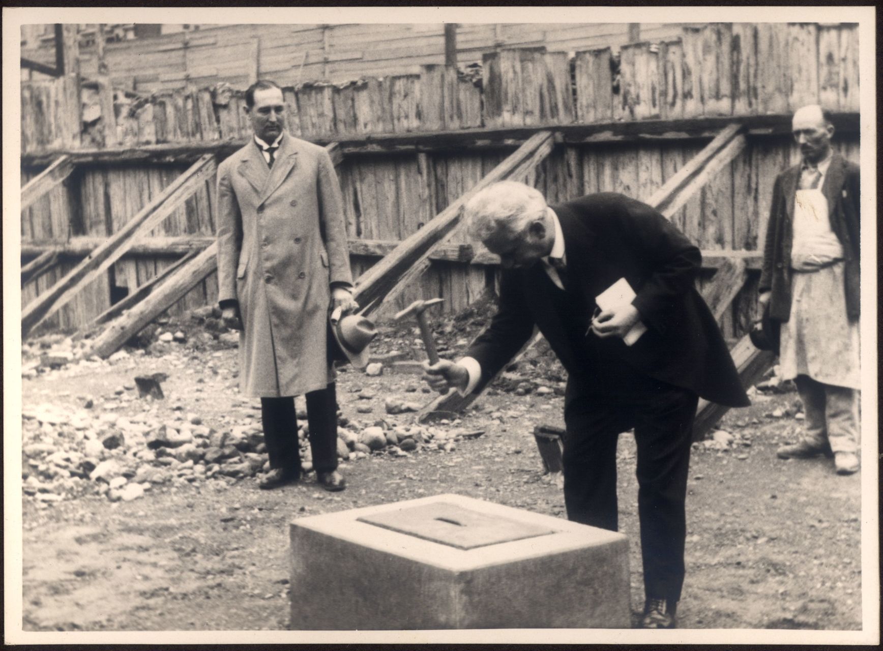 Dass der damals knapp 30jährige aus einer Grazer Arztfamilie stammende und völlig unbekannte Grazer Architekt Rambald Steinbüchel-Rheinwall mit seinem Entwurf (Motto „Rotes Dreieck“) den 1930 ausgeschriebenen Wettbewerb für sich entscheiden konnte, wurde von der Jury mit „der am konsequentesten umgesetzten Grundrisslösung“ begründet.