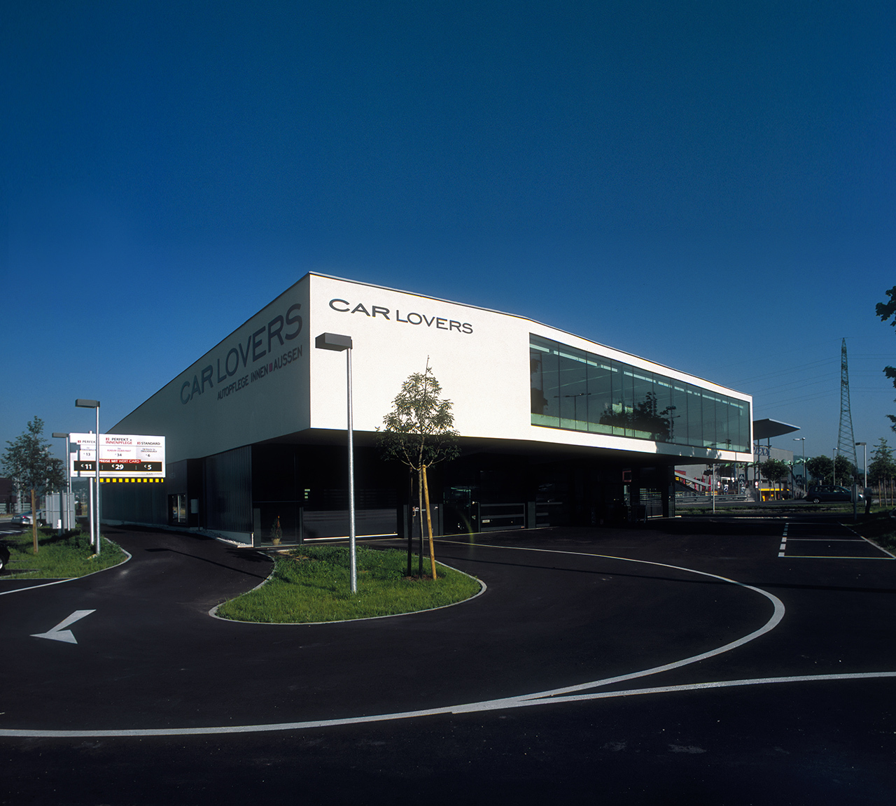 Schon beim Betreten unterscheidet sich das Bauwerk von anderen Bauaufgaben, denn der erste Kontakt des Benutzers mit dem Gebäude erfolgt nicht zu Fuß, sondern im Auto sitzend. Nach dem „Check-in“ fährt man zuerst in die Waschstraße im ersten der beiden 50 Meter langen Reinigungsbereiche, die die Kubatur des Gebäudes bestimmen. Erst bei der Einfahrt in die, an der gegenüberliegenden Seite gelegene Innenreinigung übergibt der Kunde sein Auto an die Angestellten. Sich langsam auf einem Förderband bewegend wird das Fahrzeug in mehreren Schritten gereinigt.