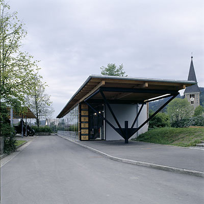 in differenzierte Lichtstimmungen. Die Vordachkonstruktion des benachbarten Schulgebäudes schafft dem Museum ein verbindendes Gegenüber. (Nach einem Text der Architekt:innen)