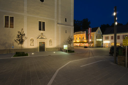 Beleuchtet werden hauptsächlich das Kirchenportal und die Seiteneingänge, sowie die Erdgeschosszonen der umstehenden Häuser. Dafür werden Leuchten mit asymmetrischer Lichtverteilung verwendet. Mit dieser Beleuchtung werden auch die wichtigen Fußgängerbereiche entlang der Häuser gut ausgeleuchtet.