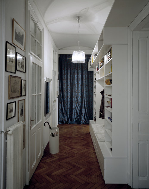 Die über lange Zeit leer stehende Wohnung verlangte nach behutsamen Eingriffen in Form von wohl durchdachten Lösungen für attraktiven Stau- und Aufenthaltsraum mit einer Kombination aus Garderobe, Bibliothek, Kücheneinbauten sowie Bereichen zum Verweilen. Gleichzeitig wurde das Esszimmer mit einer ganzjährig nutzbaren Loggia vergrößert und der Wohnraum erweitert. Die Schlafräume hingegen sind kompakt gehalten und erlauben somit Großzügigkeit in der Raumschaffung für die Gemeinschaftsbereiche.