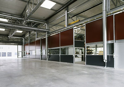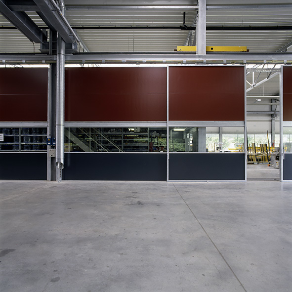In den einzelnen Produktionsbereichen gibt es aus Betonziegelmauerwerk bestehende Einheiten, welche die Meisterbüros, Kleinteilelager und die Sanitäreinheiten beherbergen. Ansonsten sind die einzelnen Fertigungsbereiche durch teilweise mobile Trennwände aus Sandwichpaneelen von einander abgeschlossen.