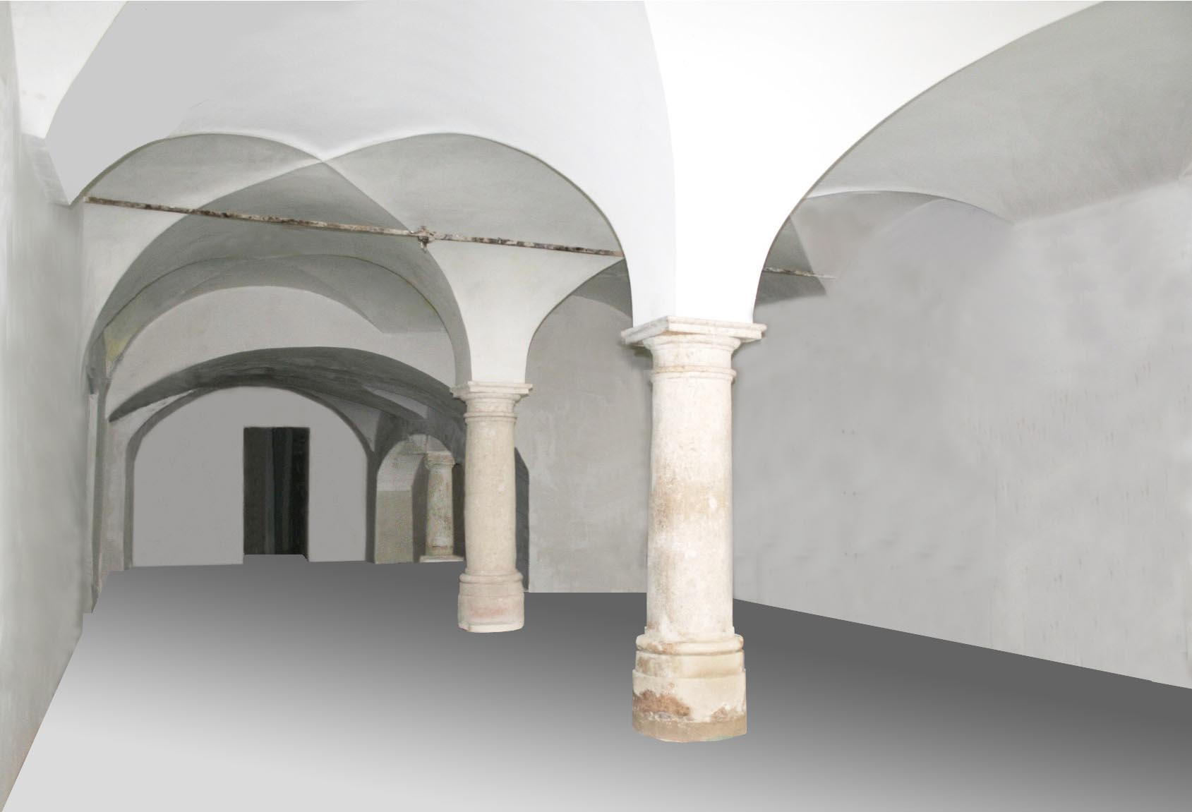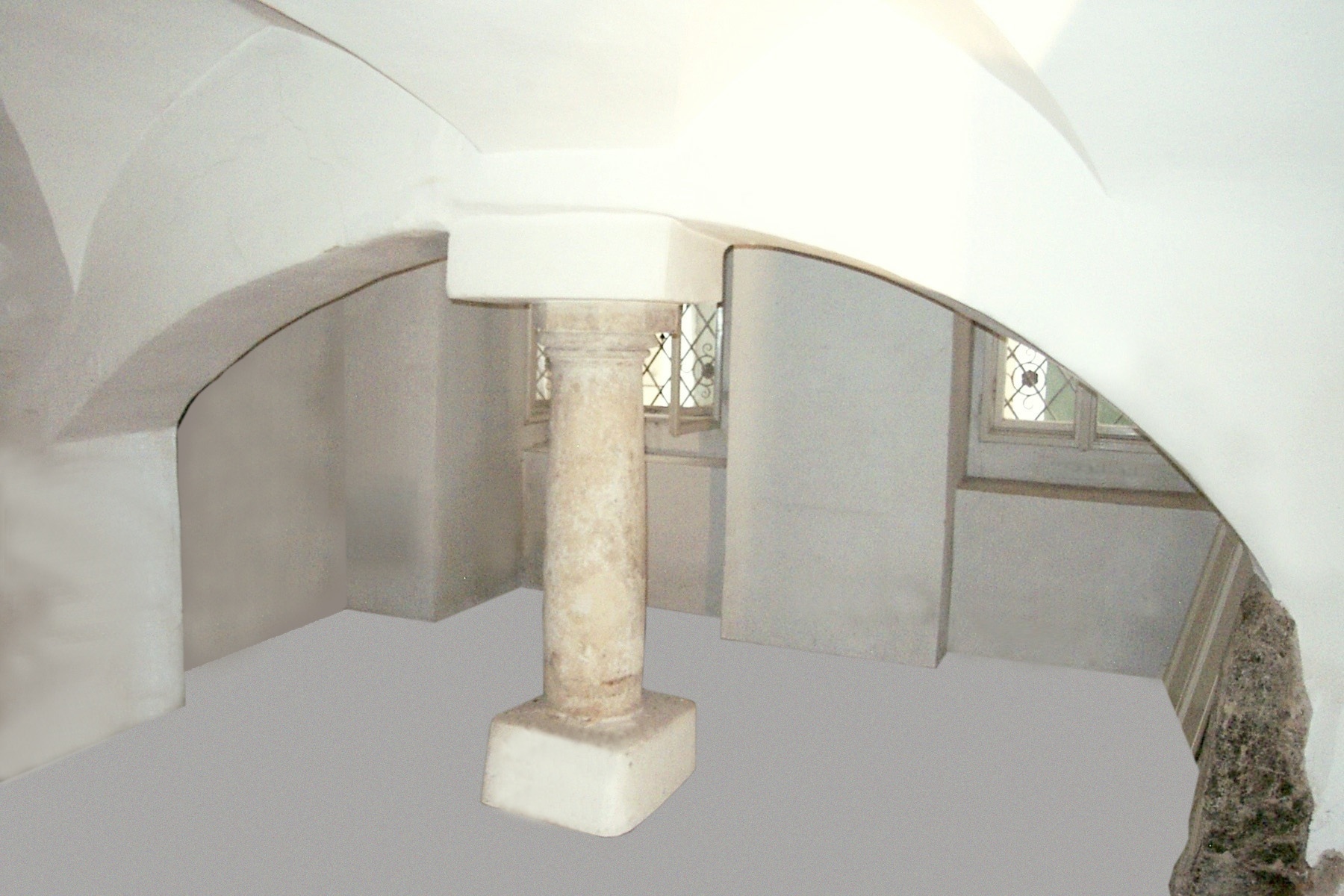 Durch Ergänzung einer tragenden Säule, deren Basis in einer abgetragenen sekundären Wand noch gefunden wurde, konnte der heutige große überwölbte Geschäftsraum wiederhergestellt und damit die ursprüngliche Architektur repariert werden.