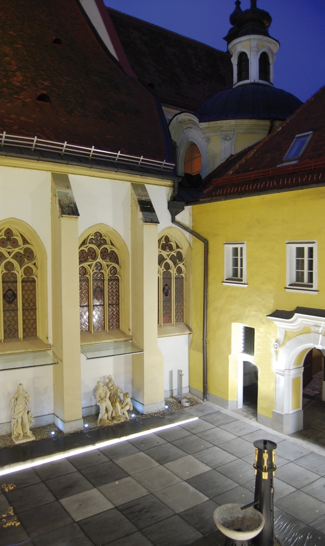 Die Höhenunterschiede der verschiedenen Eingangsebenen wurden durch eine Treppen- und Rampenanlage miteinander verbunden. Die Heiligenfiguren wurden an der Südseite der Kirchenwand neu geordnet.