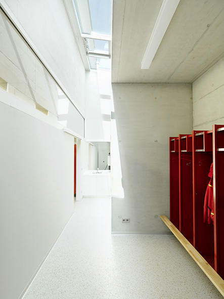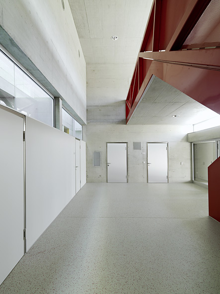 Trotz dieser ’regionalen Maßstäblichkeit’ erscheint der grundrisslich kompakte Baukörper als Einheit. Durch die komplexe Schachtelung der einzelnen Bereiche wurde ein optimierter funktionaler Ablauf unter bestmöglichen Bedingungen (natürliche Belichtung und Belüftung aller Räume) erzielt.