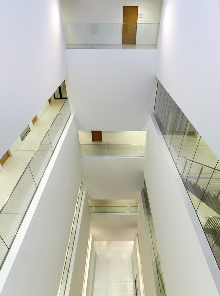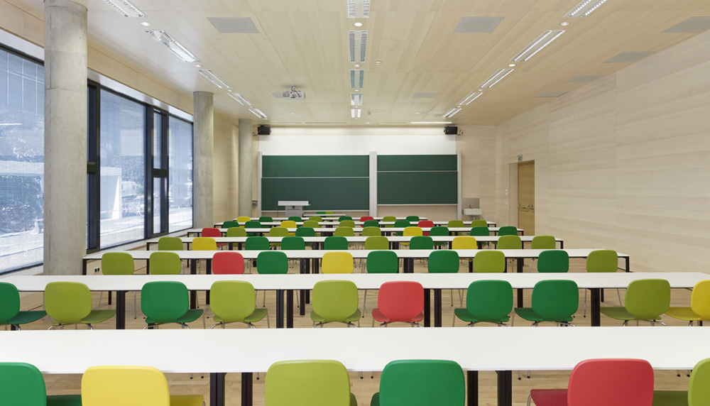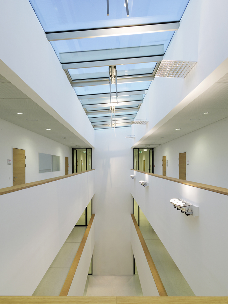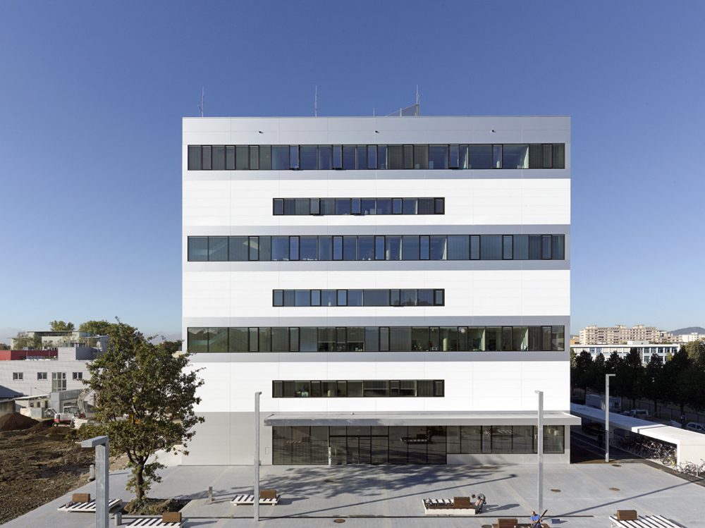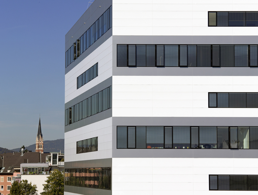 Die ganze Anlage wird mit Erdwärme geheizt (kalte Jahreszeit) und mit Erdwärme gekühlt (warme Jahreszeit). Auf diese Weise wird der Erde wieder zurückgegeben, was ihr an Wärmeenergie entnommen wird und die Wärmebilanz bleibt annähernd neutral. Auf dem beengten Areal sind unter den Gebäuden und außerhalb der Gebäude etwa hundert Erdwärmesonden von ca. 120 m Tiefe verlegt worden. (Text: Architekt)