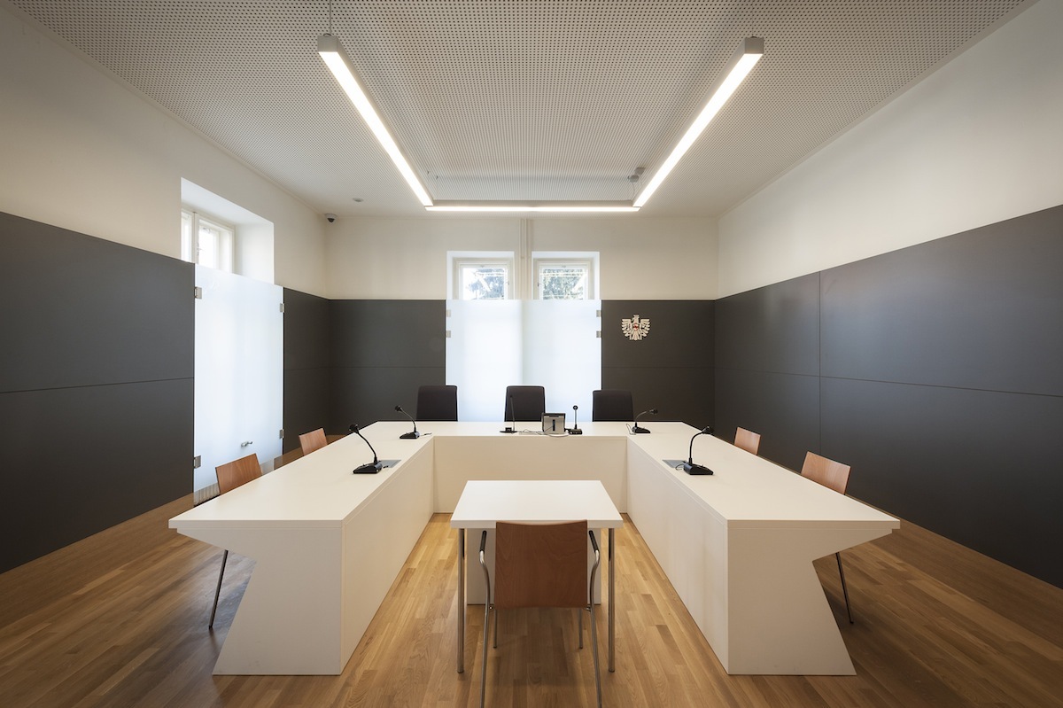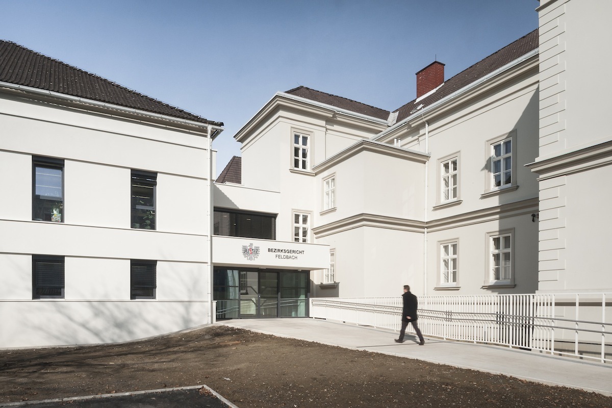 Mit seinen rundum klaren Linien, dem so pragmatisch wie funktionell angelegten Raumprogramm und der unaufdringlich wirkenden Einpassung in das verfügbare Areal des Gerichtskomplexes erweist sich der Um- und Zubau gleichermaßen adäquat den Anforderungen für Amtsgebäude wie jenen von Benutzern und Bediensteten.