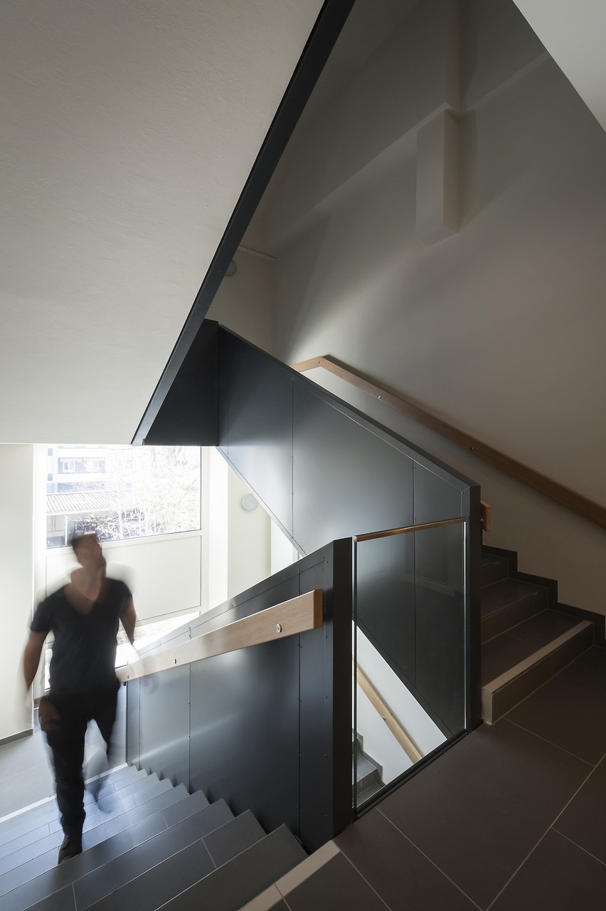 Der Frage, wie ein historisches Gebäude um der Zeit adäquate Elemente zu ergänzen sei, wobei im Innen- wie im Außenbereich eine klar ersichtliche Differenzierung alter wie neuer Substanz gegeben bleibt, begegneten EDERER + HAGHIRIAN ARCHITEKTEN in ihrem Entwurf mit Überlegungen, die inzwischen auch in der Architektur als Sublimation bezeichnet werden. Nicht Umformung, vielmehr ist unter Sublimation der schrittweise Übergang von einer (bestehenden) in die andere (neue) Form zu verstehen. Dies äußert sich etwa bei der Begehung des umgebauten ehemaligen Gefängnisgebäudes über den Flur, das mit der Verlängerung des aktuellen Zubaus eine formale und neu gestaltete Einheit bildet.