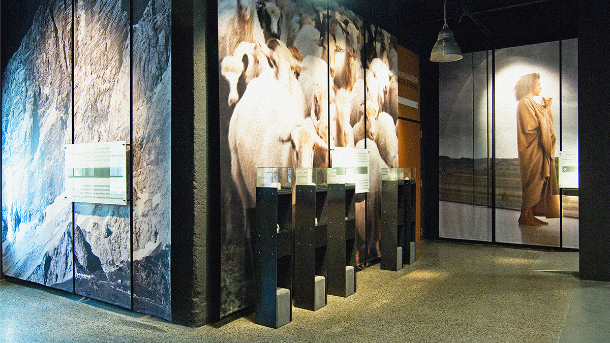 Der neu errichtete Eingangsbereich dient als Foyer und Verteilerschleuse innerhalb der Textilfabrik. Neben dem zentralen Stiegenhaus und neuer Sanitäreinrichtungen wurde ein Kinoraum errichtet, in dem die Anfänge und die Entwicklung des Unternehmens gezeigt werden. Einzelne Hocker, welche mit gewalkten Überzügen der eigenen Produktion in auffälligen Farben überzogen sind, bilden kleine Akzente in dem sonst sehr zurückhaltend ausgestatteten Ausstellungsbereich. An den dunklen Wänden des Foyers sind Textilscreens angebracht, die die verschiedenen Abnehmer der Loden, sowie die Vorgeschichte des Betriebs zeigen. Eine interaktive Station ermöglicht den Interessierten die Rohwolle verschiedener Tiere zu erfühlen. Weitere dieser haptischen Stationen lassen die Besucher:innen im Laufe des gesamten Rundgangs den Herstellungsprozess „begreifen“.